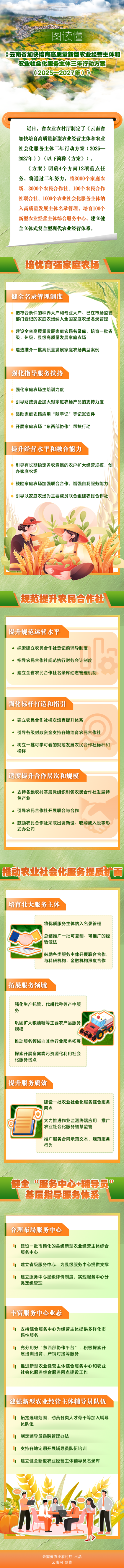 一圖讀懂《云南省加快培育高質(zhì)量新型農(nóng)業(yè)經(jīng)營(yíng)主體和農(nóng)業(yè)社會(huì)化服務(wù)主體三年行動(dòng)方案(2025—2027年)》