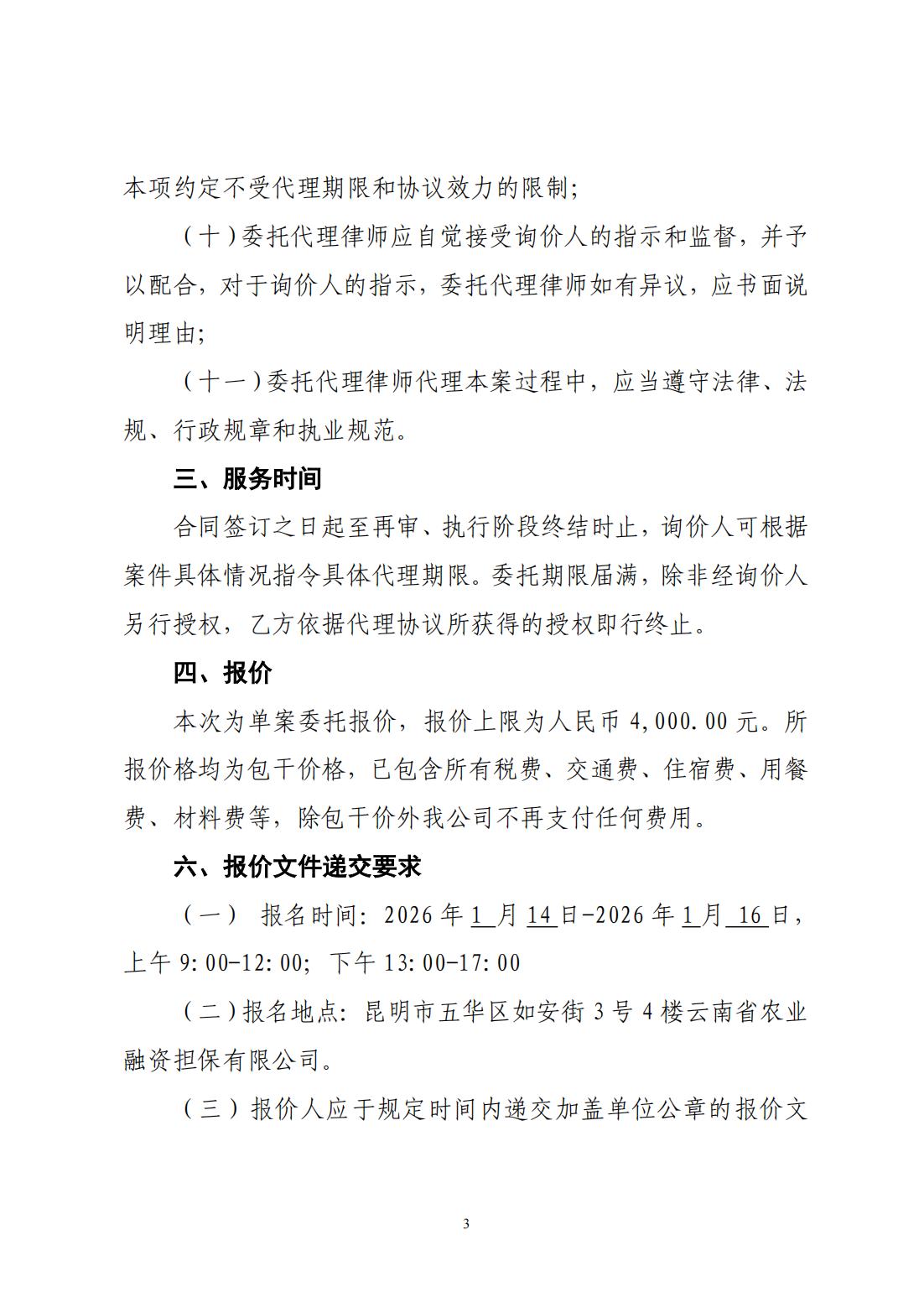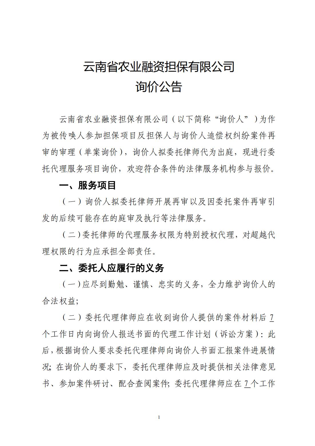 云南省農(nóng)業(yè)融資擔(dān)保有限公司詢價公告