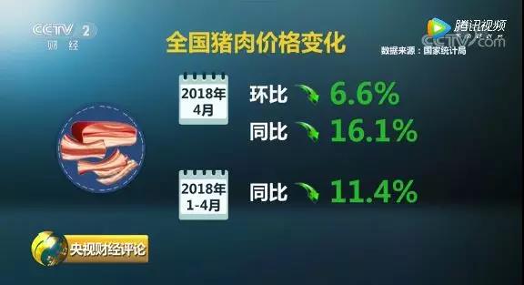 4月份,豬肉價(jià)格環(huán)比下跌6.6%,同比下跌16.1%,創(chuàng)5年來新低,生豬價(jià)格更是創(chuàng)8年新低;1到4月份,同比下跌11.4%。