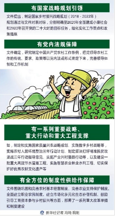 ——有全方位的制度性供給作保障。文件圍繞鞏固和完善農(nóng)村基本經(jīng)營(yíng)制度、完善農(nóng)業(yè)支持保護(hù)制度、全面建立職業(yè)農(nóng)民制度、建立市場(chǎng)化多元化生態(tài)補(bǔ)償機(jī)制、鼓勵(lì)引導(dǎo)工商資本參與鄉(xiāng)村振興等方面,部署了一系列重大改革舉措和制度建設(shè)。