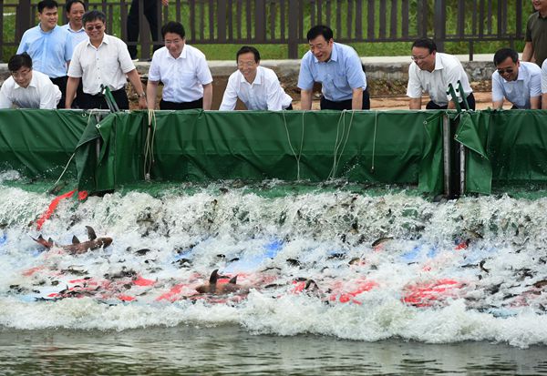 韓長(zhǎng)賦強(qiáng)調(diào),開展水生生物增殖放流活動(dòng),是貫徹落實(shí)全國(guó)生態(tài)環(huán)境保護(hù)大會(huì)精神和習(xí)近平總書記“把修復(fù)長(zhǎng)江生態(tài)環(huán)境擺在壓倒性位置,共抓大保護(hù)、不搞大開發(fā)”重要指示的具體行動(dòng),是修復(fù)長(zhǎng)江水生生物資源、維護(hù)長(zhǎng)江生物多樣性的重要舉措,是助推長(zhǎng)江經(jīng)濟(jì)帶綠色發(fā)展、建設(shè)美麗中國(guó)的有益探索。要認(rèn)真貫徹落實(shí)習(xí)近平總書記關(guān)于共抓長(zhǎng)江大保護(hù)的重要指示要求,強(qiáng)化思想自覺,全力唱響質(zhì)量興漁、綠色興漁主旋律,為建設(shè)“生態(tài)長(zhǎng)江”“綠色長(zhǎng)江”作出積極貢獻(xiàn)。