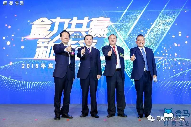 從左到右依次:云南省省委農(nóng)辦主任、農(nóng)業(yè)廳廳長(zhǎng)王敏正,湖北省農(nóng)業(yè)廳黨組書記、廳長(zhǎng)肖伏清,山東省農(nóng)業(yè)廳副廳長(zhǎng)褚瑞云,盒馬CEO侯毅