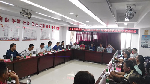 8月29日馬來(lái)西亞維護(hù)與發(fā)展協(xié)會(huì)會(huì)長(zhǎng)、皇室拿督蔡振行博士一行27人到昆明市農(nóng)業(yè)局開(kāi)展農(nóng)業(yè)交流,市農(nóng)業(yè)局倪淼副局長(zhǎng)、局辦公室、人事處、種植業(yè)處、畜牧處、市場(chǎng)信息處、質(zhì)監(jiān)處等相關(guān)處室人員參加座談會(huì)。