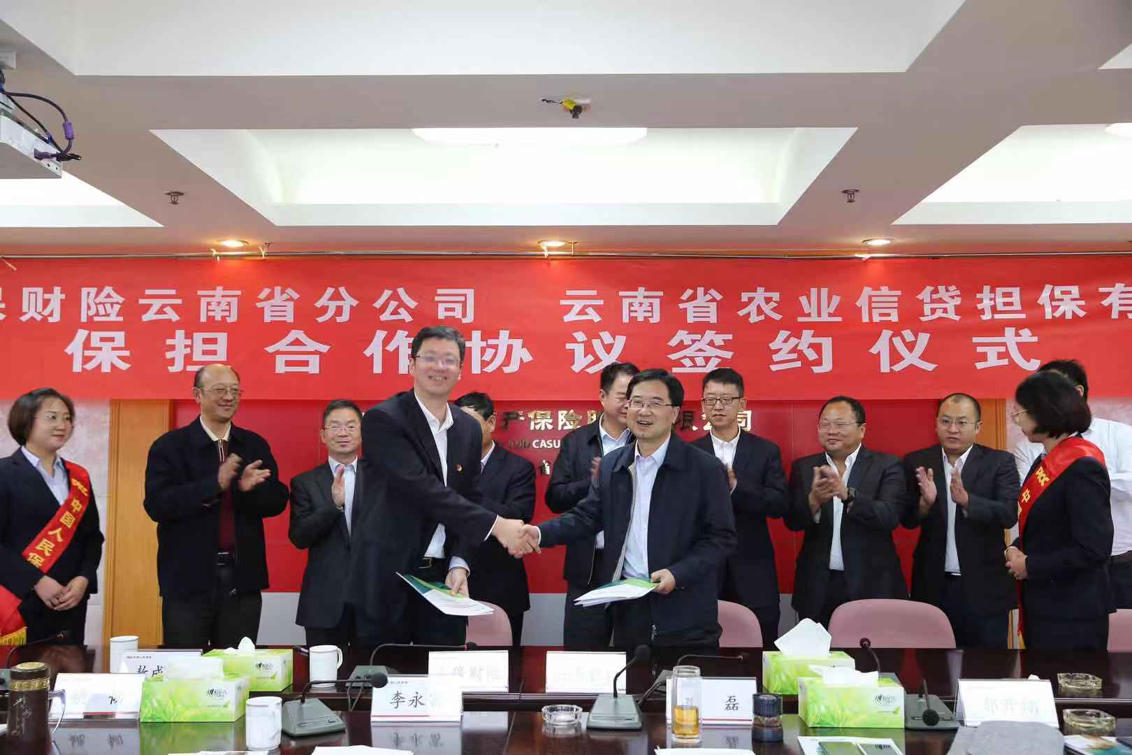 10月19日下午,公司與中國(guó)人保財(cái)險(xiǎn)云南省分公司舉行了保擔(dān)合作協(xié)議簽約儀式。公司郭影董事長(zhǎng)、杜開(kāi)波總經(jīng)理、敖成碧副總經(jīng)理、人保財(cái)險(xiǎn)云南省分公司黨委書(shū)記、總經(jīng)理雙磊、副總經(jīng)理李永富出席儀式,雙方有關(guān)部門(mén)負(fù)責(zé)人參加了活動(dòng)。
