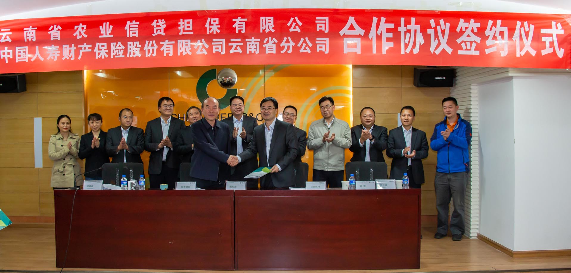 11月16日下午,云南省農(nóng)業(yè)信貸擔(dān)保有限公司與中國(guó)人壽財(cái)產(chǎn)保險(xiǎn)股份有限公司云南省分公司簽訂了合作協(xié)議。