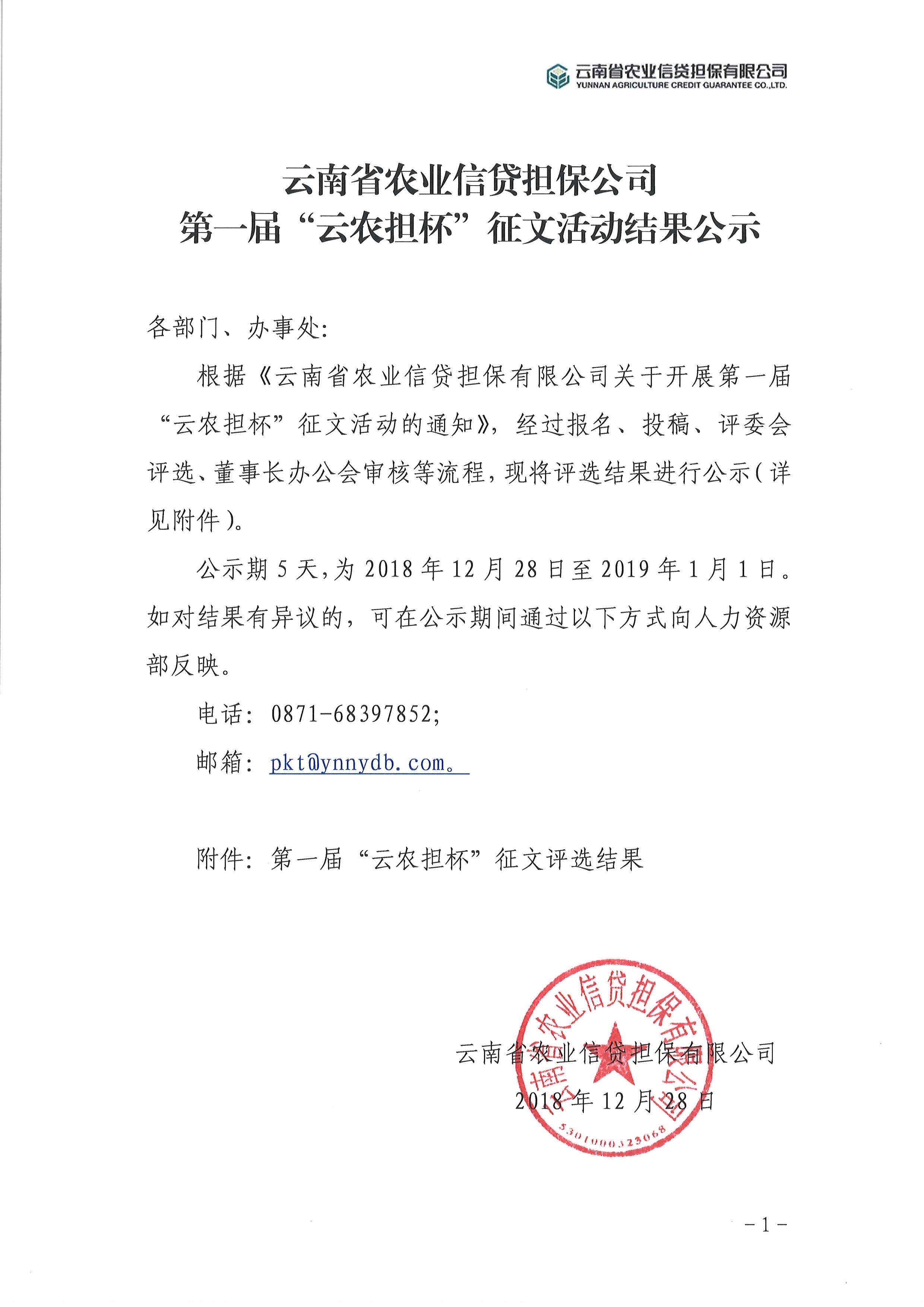 云南省農(nóng)業(yè)信貸擔(dān)保公司第一屆“云農(nóng)擔(dān)杯”征文活動(dòng)結(jié)果公示各部門(mén)、辦事處: