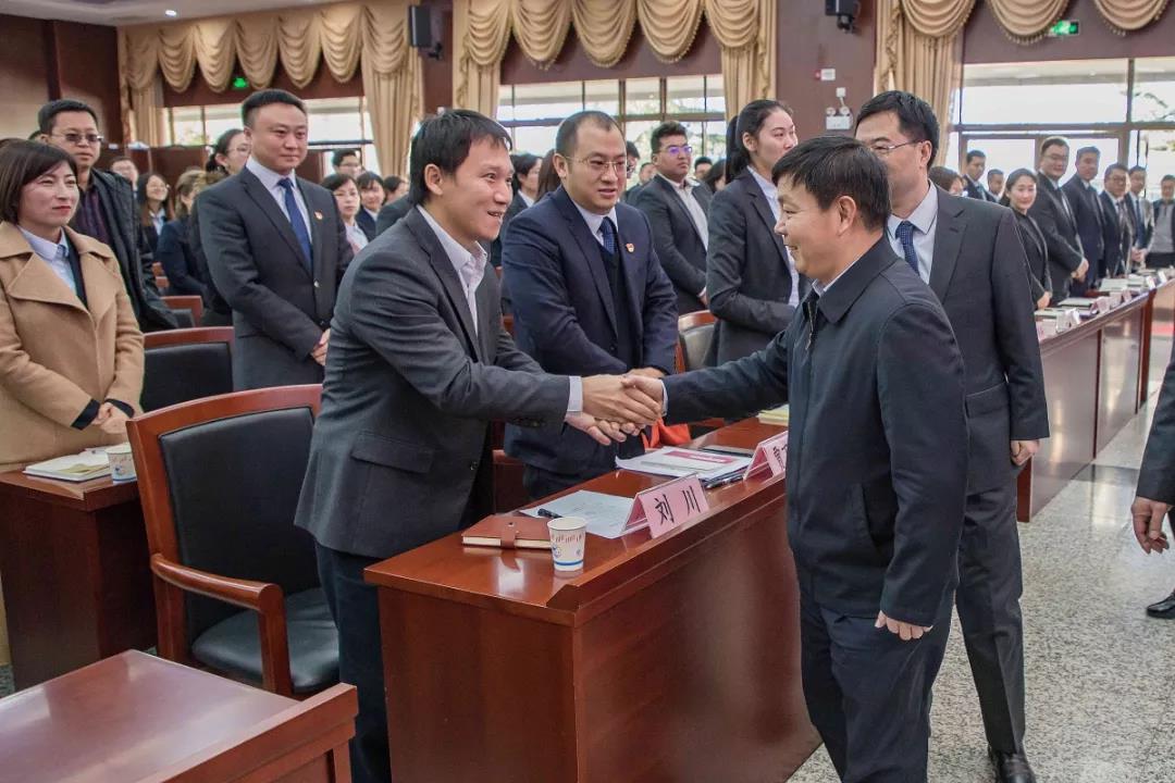 在總結(jié)會會場,張巖松廳長與省農(nóng)擔公司優(yōu)秀員工親切握手,一一詢問大家的工作情況。張巖松廳長對2018年省農(nóng)擔公司取得的不俗成績給予了充分肯定。他表示,全體農(nóng)擔員工按照省委、省政府的安排部署,開拓創(chuàng)新、銳意進取,機構(gòu)覆蓋全省16個州市,業(yè)務覆蓋118個縣,圓滿完成新增涉農(nóng)貸款擔保50億的任務,是大家共同努力、辛勤工作的成果,值得鼓勵和祝賀。