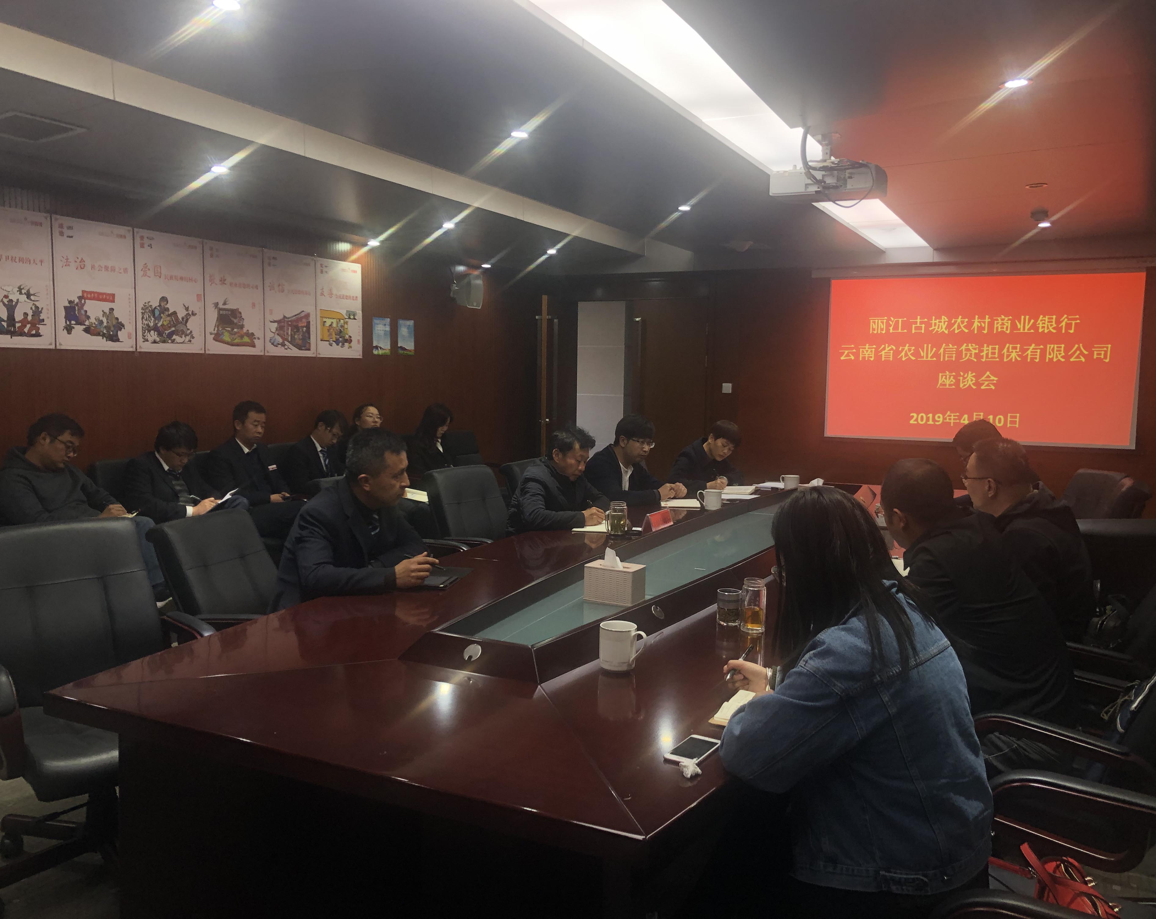 下午與古城農(nóng)商行董事長蔡云波,信貸部總經(jīng)理鄭樹立,及各支行行長開展座談會。農(nóng)商行董事長蔡云波詳細介紹了古城農(nóng)商行的基本情況,指出農(nóng)商行在三農(nóng)有一定的地位優(yōu)勢,涉農(nóng)客戶群體廣,希望雙方加強對接,推進業(yè)務(wù)發(fā)展,共同解決三農(nóng)“融資難,融資貴”的問題。副總經(jīng)理廖寅皓向古城農(nóng)商行詳細介紹了公司的基本情況,業(yè)務(wù)準(zhǔn)入標(biāo)準(zhǔn)及公司現(xiàn)階段業(yè)務(wù)發(fā)展情況,表示公司一直以來都重視與農(nóng)信社體系的對接,重視與農(nóng)信社的合作,指出目前麗江辦與古城農(nóng)商行業(yè)務(wù)增速較為緩慢,項目數(shù)量相對落后,希望此次座談形成新的共識,在2019年有新突破,新開展,積極推動業(yè)務(wù)開展。