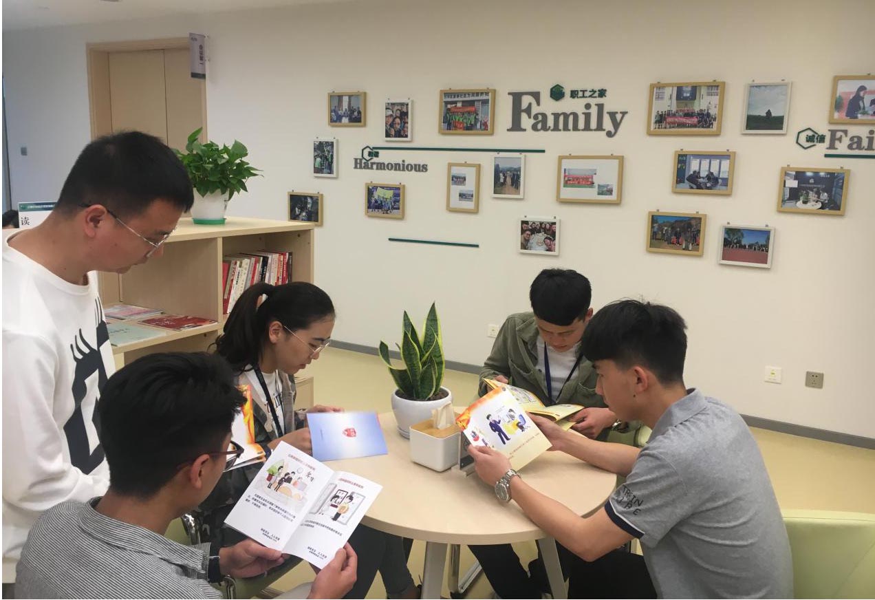公司員工在讀書角認(rèn)真閱讀國家安全工作宣傳手冊