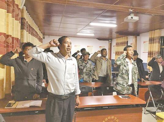 郭彩廷帶領膽扎社區(qū)第一黨支部黨員重溫入黨誓詞