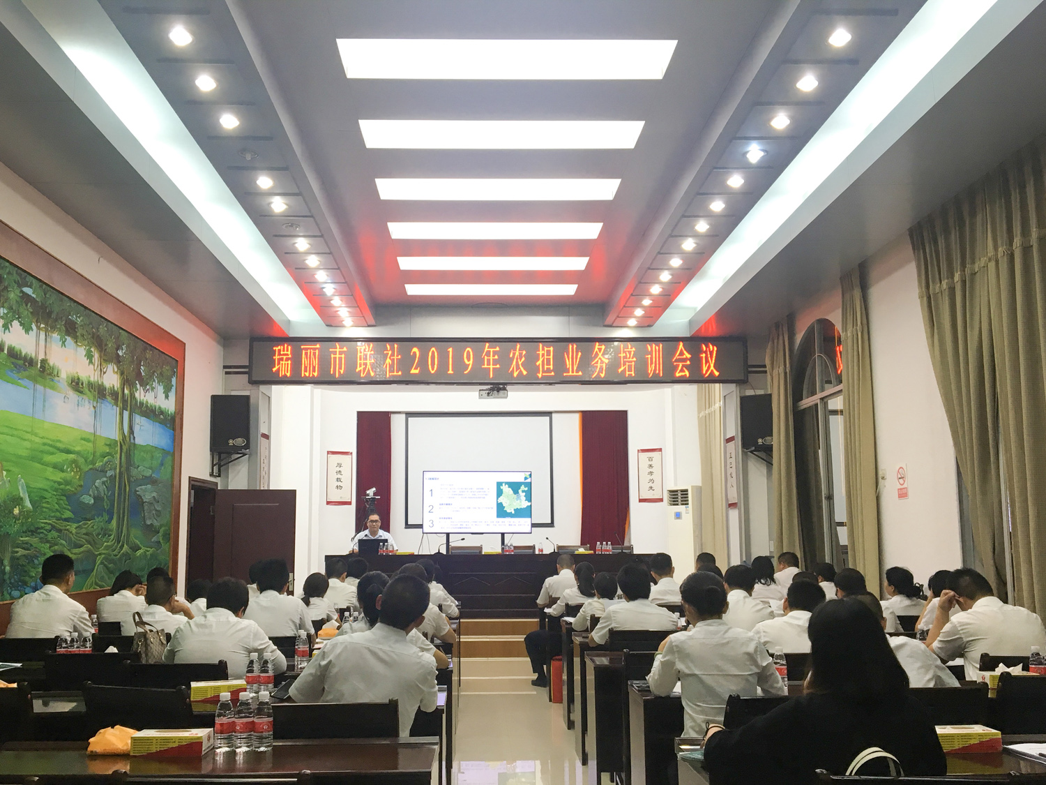 今天的德宏,是我國“一帶一路”的重要國際陸港、面向南亞東南亞輻射中心的關(guān)鍵點、中緬經(jīng)濟(jì)走廊的門戶樞紐。為更好的推動自由貿(mào)易試驗區(qū)瑞麗市的業(yè)務(wù)開展,深化銀擔(dān)合作,10月29日,德宏辦事處項目經(jīng)理閆忠魁、尹瑞、張雯雯一行赴瑞麗市農(nóng)村信用合作聯(lián)社開展業(yè)務(wù)交流座談會,并受邀進(jìn)行業(yè)務(wù)培訓(xùn)會。瑞麗市聯(lián)社監(jiān)事長尹金能、副主任郭建材、信貸部經(jīng)理施婷及市內(nèi)各網(wǎng)點主任及信貸經(jīng)理共40人參會。