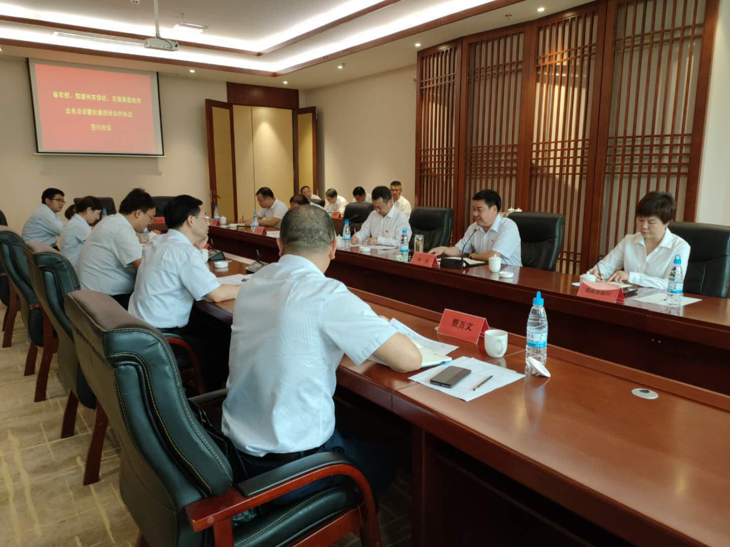 會(huì)上,省農(nóng)擔(dān)公司郭影董事長(zhǎng)與楚雄州九縣一市農(nóng)信社、農(nóng)商行主要負(fù)責(zé)人簽署了業(yè)務(wù)合作協(xié)議。元謀縣委書(shū)記李勇、省農(nóng)擔(dān)公司董事長(zhǎng)郭影、省農(nóng)信社楚雄辦事處主任李振華分別發(fā)表了講話(huà)。