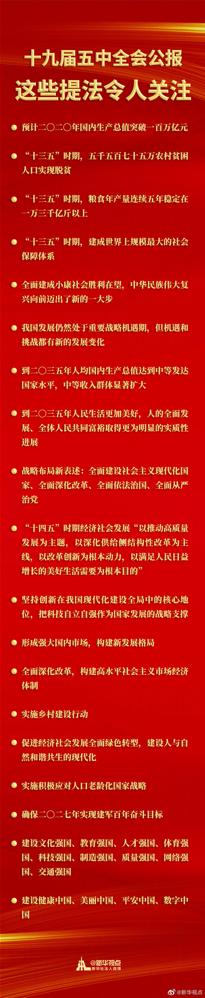 面向未來,全會及其通過的建議擘畫了中國未來5年以及15年的發(fā)展新藍圖,宣示了以習近平同志為核心的黨中央帶領全黨全國各族人民同心同德、頑強奮斗,奪取全面建設社會主義現(xiàn)代化國家新勝利的堅定決心。