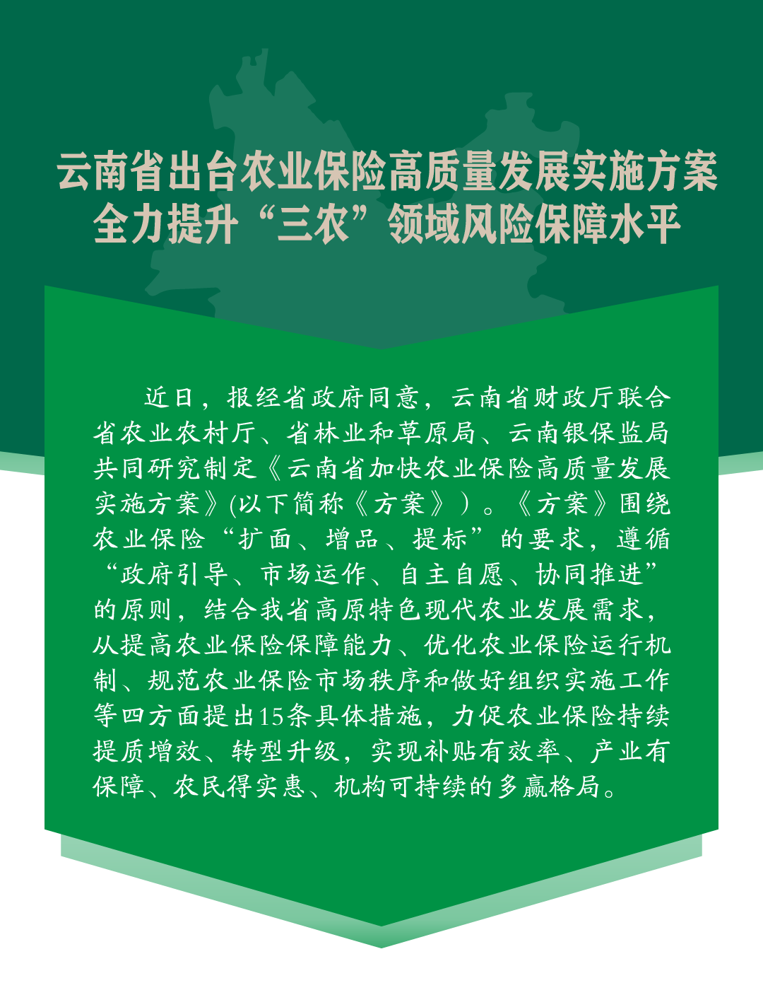 云南省出臺農業(yè)保險高質量發(fā)展實施方案 全力提升“三農”領域風險保障水平