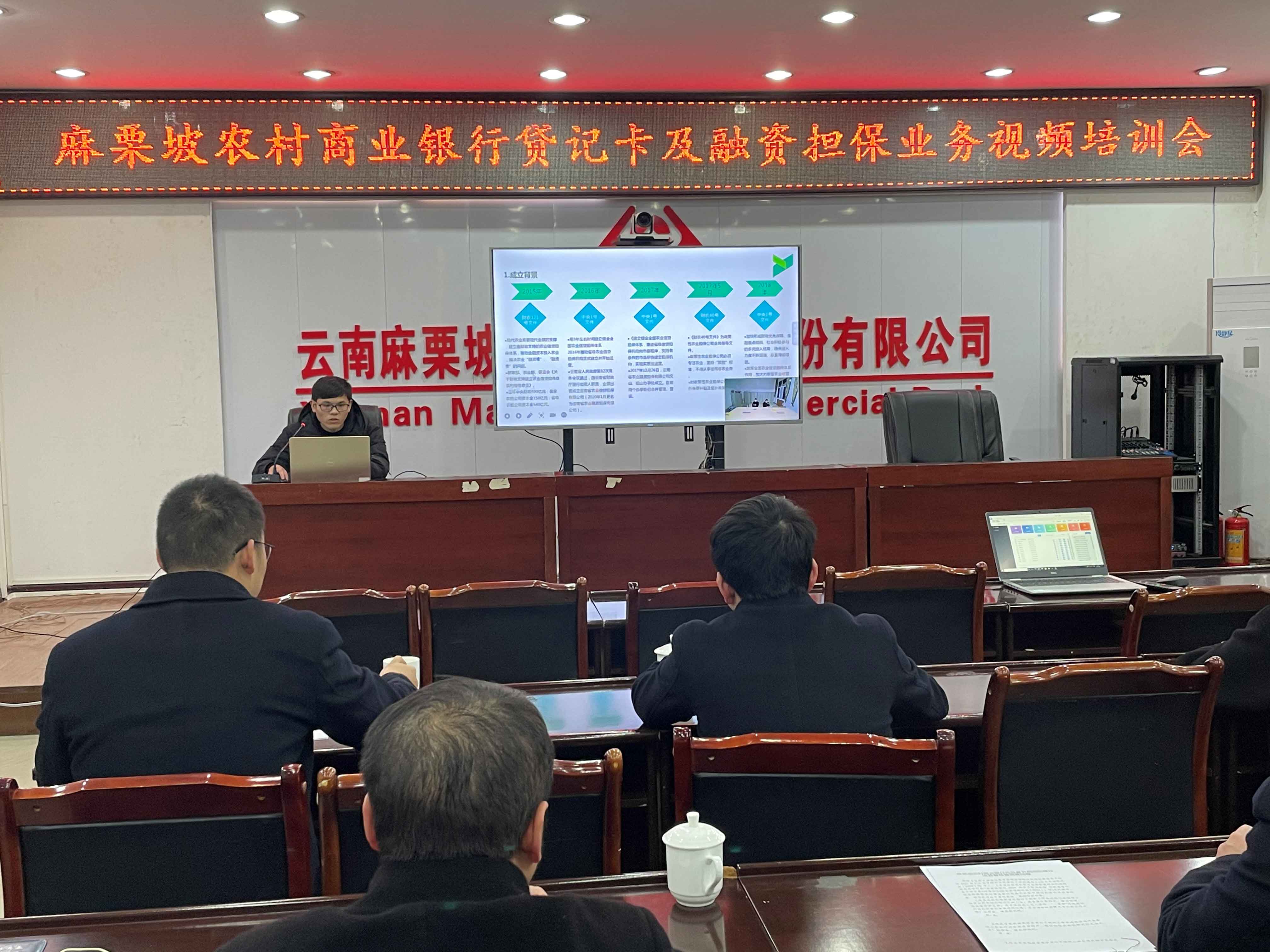 為持續(xù)深化務(wù)實(shí)合作,推動(dòng)實(shí)現(xiàn)共贏共擔(dān),2021年1月28日,文山辦事處項(xiàng)目經(jīng)理李立興、張曉倩、馮群淇一行參加了麻栗坡農(nóng)村商業(yè)銀行融資擔(dān)保業(yè)務(wù)視頻培訓(xùn)會(huì),會(huì)議由農(nóng)商行信貸部總經(jīng)理陳路平主持,文山辦事處項(xiàng)目經(jīng)理李立興主講,各基層行長(zhǎng)及業(yè)務(wù)骨干參加。