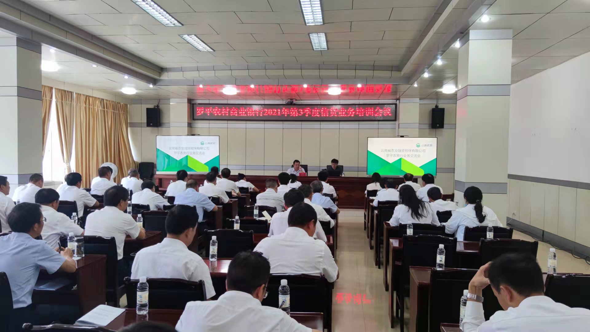 2021年9月11日,曲靖辦事處陳俊、皇家軍、陳藝兮,應(yīng)邀參加羅平農(nóng)商行2021年第3季度信貸業(yè)務(wù)培訓(xùn)會議。此次培訓(xùn)會由羅平農(nóng)商行行長柏興平主持, 全縣各支行行長、客戶經(jīng)理參會。