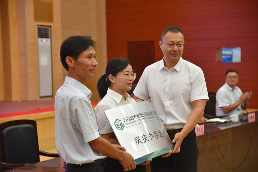 為進(jìn)一步助推鳳慶縣農(nóng)業(yè)產(chǎn)業(yè)振興,發(fā)揮農(nóng)擔(dān)政策性擔(dān)保作用,9月15日,云南省農(nóng)擔(dān)公司鳳慶辦事處授牌儀式在鳳慶縣會展中心報告廳順利舉行。公司總經(jīng)理李世偉、戰(zhàn)略發(fā)展部經(jīng)理蔡菲、業(yè)務(wù)發(fā)展部副經(jīng)理寸明杰,臨滄市人民政府金融辦公室主任羅廷榮、鳳慶縣委常委、縣人民政府常務(wù)副縣長陳正華、臨滄市農(nóng)業(yè)農(nóng)村局副局長翟國軍等領(lǐng)導(dǎo)出席會議。鳳慶縣各政府部門及鳳慶縣13個鄉(xiāng)(鎮(zhèn))人民政府分管農(nóng)業(yè)農(nóng)村工作的領(lǐng)導(dǎo),縣人行及各金融機構(gòu)主要負(fù)責(zé)人參加會議。