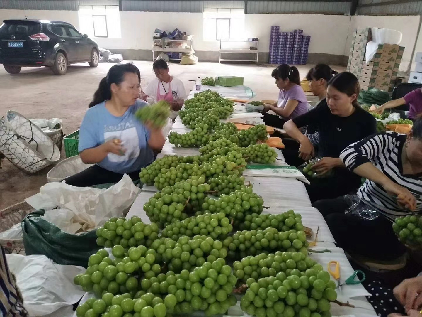 云南農(nóng)擔(dān)公司在??蛻綦p柏縣三江葡萄莊園有限公司成立于2013年,注冊(cè)資本金100萬(wàn)元,是一家專門(mén)從事葡萄種植銷售的企業(yè),現(xiàn)有技術(shù)人員2人,管理人員5人,一線種植固定工人40余人。在雙柏縣大麥地鎮(zhèn)很本楷建有葡萄基地50畝,用于試種陽(yáng)光玫瑰,并取得一定經(jīng)驗(yàn)。在農(nóng)擔(dān)公司支持和幫助下,2018年公司擴(kuò)大種植規(guī)模至185畝并取得了一定的經(jīng)濟(jì)效益。由于綠汁江畔獨(dú)特的氣候條件和精湛的技術(shù),三江公司開(kāi)創(chuàng)了雙季葡萄的先河,一年可采收葡萄2次,分別于4月初和9月底上市。以上圖片為盡調(diào)時(shí)拍攝的基地工人包裝陽(yáng)光玫瑰的照片。