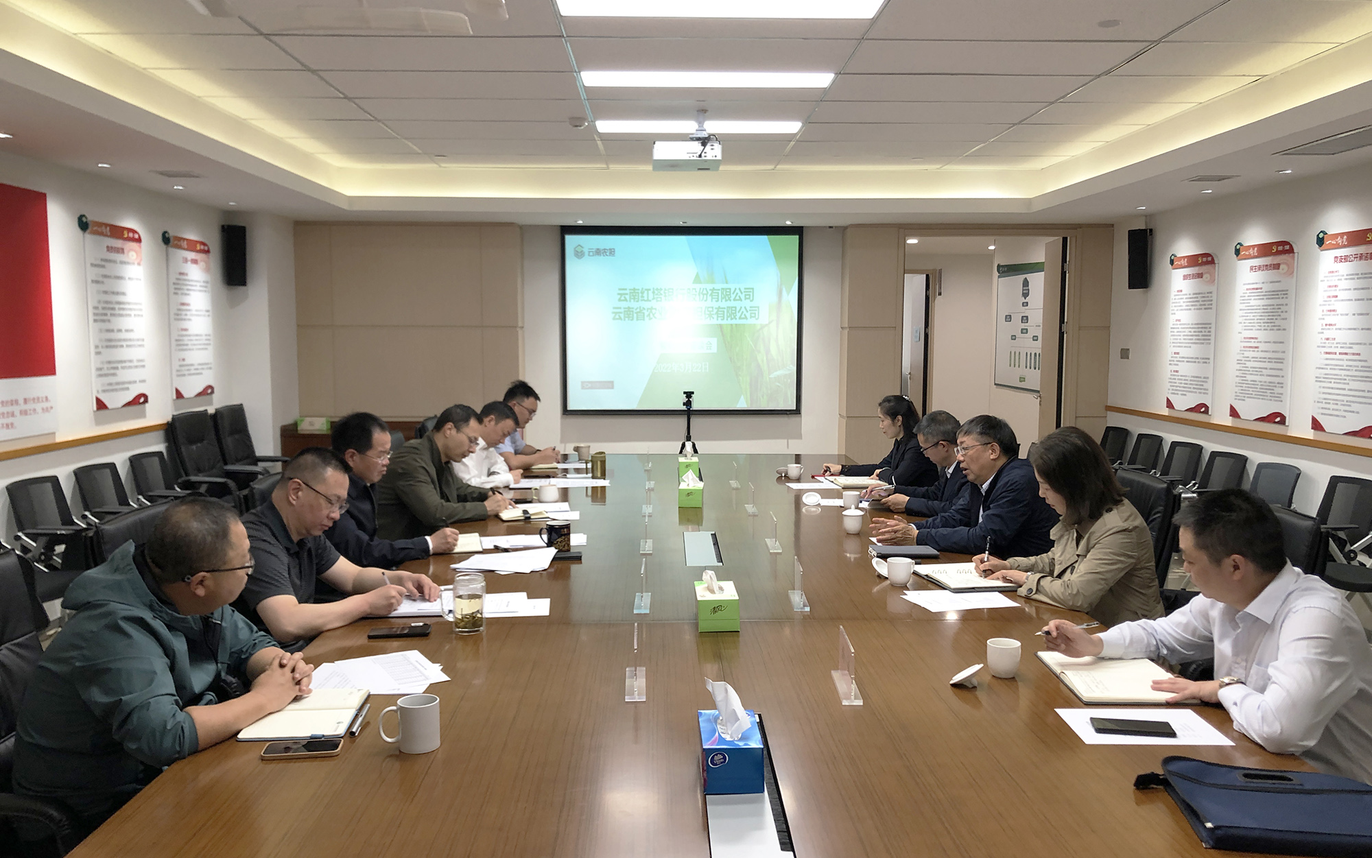 3月22日,云南農(nóng)擔(dān)與紅塔銀行召開銀擔(dān)合作座談會(huì)。紅塔銀行行長張振民、行長助理張繼、風(fēng)險(xiǎn)管理部、普惠金融業(yè)務(wù)部,公司董事長杜開波、總經(jīng)理李世偉、副總經(jīng)理廖寅皓、副總經(jīng)理梁威、業(yè)務(wù)發(fā)展部及戰(zhàn)略發(fā)展部參加會(huì)議。雙方就現(xiàn)階段戰(zhàn)略合作有關(guān)事宜進(jìn)行深入交流并達(dá)成共識(shí)。