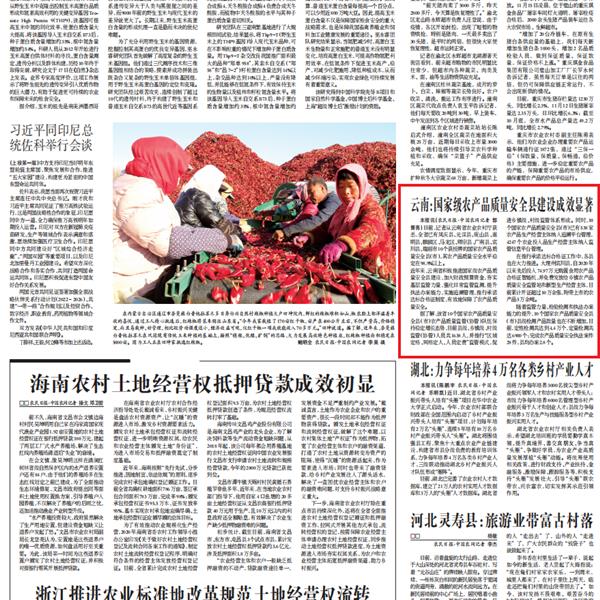 國(guó)家級(jí)農(nóng)產(chǎn)品質(zhì)量安全縣建設(shè)成效顯著!《農(nóng)民日?qǐng)?bào)》刊文點(diǎn)贊云南
